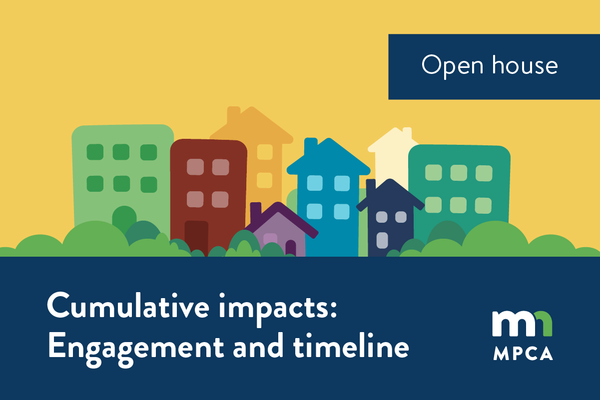 Please join us for an opportunity to discuss the MPCA’s public engagement and timeline of the cumulative impacts rulemaking process. At this open house, we will share and discuss our engagement practices thus far in the rulemaking process, as well as share information and answer questions about upcoming major milestones in the rulemaking timeline. Posters will be on display featuring the timeline of the rule’s development and implementation, the public’s input, and past engagement efforts by the MPCA. The MPCA’s cumulative impacts engagement team will be available to have conversations with the public about the information presented and general inquiries related to the rule and the rulemaking timeline moving forward.
